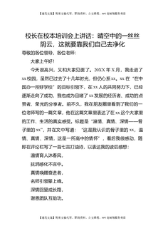 校长在校本培训会上讲话:晴空中的一丝丝阴云,这就要靠我们自己去净化.docx