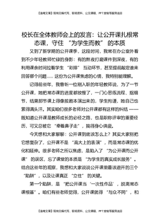 校长在全体教师会上的发言:让公开课扎根常态课,守住“为学生而教”的本质.docx