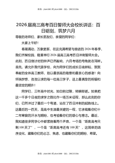 2026届高三高考百日誓师大会校长讲话:百日砺剑,筑梦六月.doc