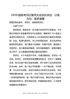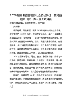 2026届高考百日誓师大会校长讲话:策马扬鞭百日竞,青云直上六月赢.doc