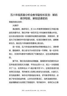 五六年级质量分析会教学副校长发言:解码教学短板,解锁逆袭密码.docx