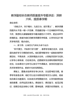 教学副校长在教师质量提升专题讲话:深耕六环,提质春学期.doc