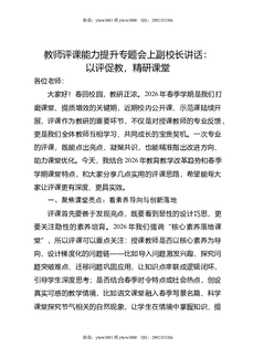 教师评课能力提升专题会上副校长讲话:以评促教,精研课堂.doc