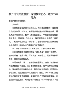 校长论坛交流发言:深耕教育初心,锤炼三种能力.doc