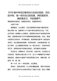 2026届中考百日誓师壮行会校长致辞:百日的冲刺,是一场与自己的较量,拼的是坚持,磨的是实力,守的是静气.docx