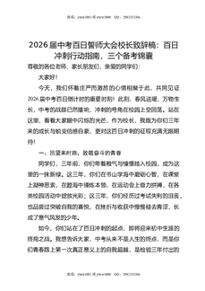 2026届中考百日誓师大会校长致辞稿:百日冲刺行动指南,三个备考锦囊.docx