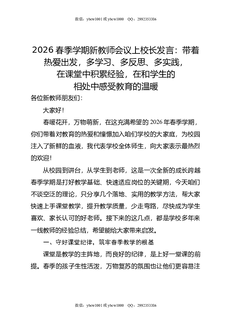 2026春季学期新教师会议上校长发言:带着热爱出发,多学习,多反思,多实践,在课堂中积累经验,在和学生的相处中感受教育的温暖.docx