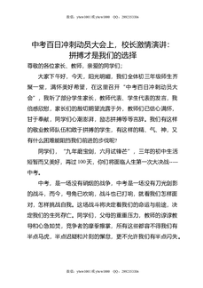 中考百日冲刺动员大会上,校长激情演讲:拼搏才是我们的选择.docx