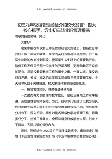 初三九年级组管理经验介绍校长发言:四大核心抓手,筑牢初三毕业班管理根基.docx