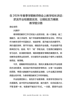 在2026年春季学期教师例会上教学校长讲话:抓实作业检查提实效,以细处发力铺就教学提分路.docx