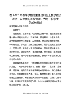 在2026年春季学期班主任培训会上教学校长讲话:以优质的班级管理,为每一位学生的成长赋能.docx