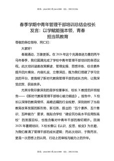 春季学期中青年管理干部培训总结会校长发言:以学赋能强本领,青春担当筑教育.doc