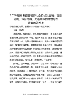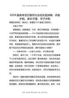 2026届高考百日誓师大会校长致辞稿:师者护航,家长守望,学子冲刺.docx