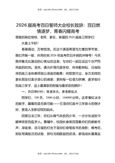 2026届高考百日誓师大会校长致辞:百日燃情逐梦,青春闪耀高考.docx