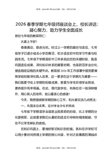 2026春季学期七年级师座谈会上,校长讲话:凝心聚力,助力学生全面成长.docx