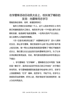 在学雷锋活动日动员大会上,校长做了精彩的发言:向雷锋同志学习.docx