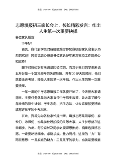 志愿填报初三家长会上,校长精彩发言:作出人生第一次重要抉择.docx