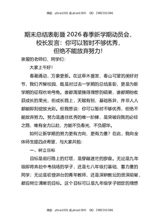 期末总结表彰暨2026春季新学期动员会,校长发言:你可以暂时不够优秀,但绝不能放弃努力!.docx