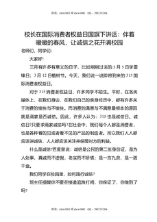 校长在国际消费者权益日国旗下讲话:伴着暖暖的春风,让诚信之花开满校园.docx