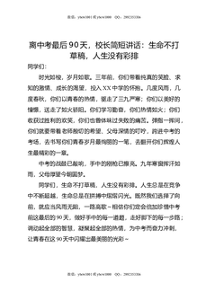 离中考最后90天,校长简短讲话:生命不打草稿,人生没有彩排.docx