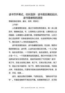 读书节开幕式,校长致辞:读书是发展的起点,读书是睿智的源泉.docx