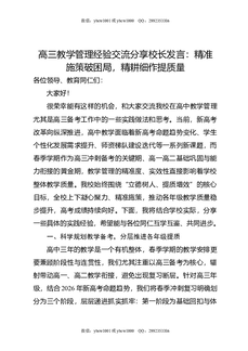 高三教学管理经验交流分享校长发言:精准施策破困局,精耕细作提质量.docx