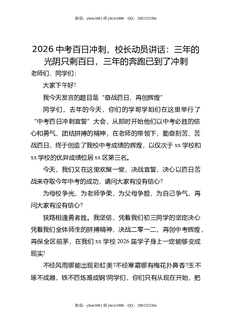2026中考百日冲刺,校长动员讲话:三年的光阴只剩百日,三年的奔跑已到了冲刺.doc