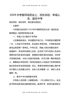 2026中考誓师动员会上,校长讲话:幸福人生,赢在中考.doc