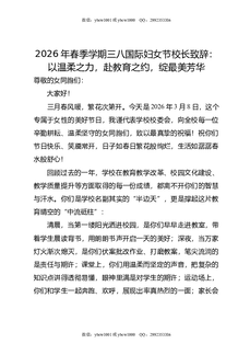 2026年春季学期三八国际妇女节校长致辞:以温柔之力,赴教育之约,绽最美芳华.doc