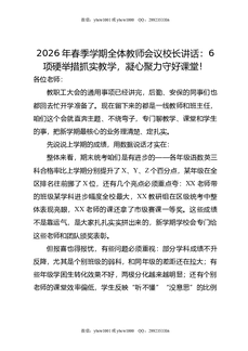 2026年春季学期全体教师会议校长讲话:6项硬举措抓实教学,凝心聚力守好课堂!.doc