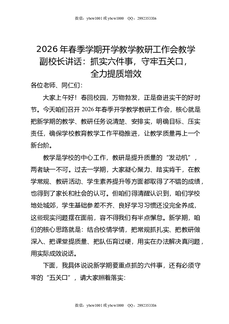 2026年春季学期开学教学教研工作会教学副校长讲话:抓实六件事,守牢五关口,全力提质增效.doc