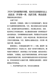 2026马年春季新学期,校长在全体家长会上的发言:开学第一课,先抓习惯,再谈成绩.doc