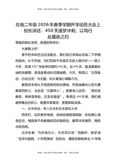 在高二年级2026年春季学期开学动员大会上校长讲话:450天逐梦冲刺,以笃行赴星辰之约.doc