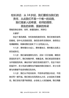 校长讲话:从18岁起,我们要担当我们的责任,从此我们不是一个唯一的自我,我们是家人的希望,老师的理想,朋友的依赖,国家的栋梁.docx