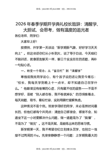 2026年春季学期开学典礼校长致辞:清醒学,大胆试,会思考,做有温度的追光者.doc