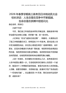 2026年春季学期高三高考百日冲刺动员大会校长讲话:人生总是在竞争中不断超越,生命总是在拼搏中熠熠闪光.doc