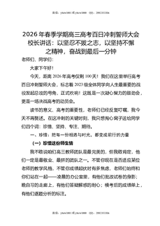 2026年春季学期高三高考百日冲刺誓师大会校长讲话:以坚忍不拔之志,以坚持不懈之精神,奋战到最后一分钟.doc