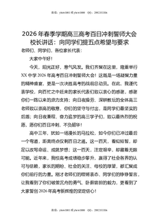 2026年春季学期高三高考百日冲刺誓师大会校长讲话:向同学们提五点希望与要求.doc