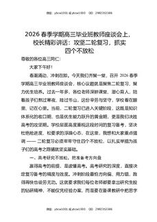 2026春季学期高三毕业班教师座谈会上,校长精彩讲话:攻坚二轮复习,抓实四个不放松.docx
