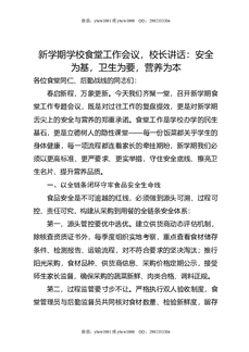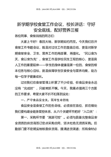 新学期学校食堂工作会议,校长讲话:守好安全底线,配好营养三餐.docx