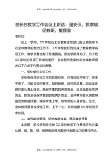 校长在教学工作会议上讲话:强安保,抓常规,促教研,提质量.docx