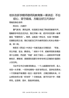 校长在新学期师德师风教育第一课讲话:不忘初心,坚守底线,方能立好三尺讲台!.docx