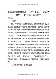全体学生家长座谈会上,校长讲话:一切为了学生,一切为了我们的孩子.docx