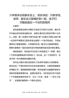 六年级毕业班家长会上,校长讲话:只有学生,老师,家长这三股绳拧到一起,孩子们才能创造出一个灿烂的明天.docx
