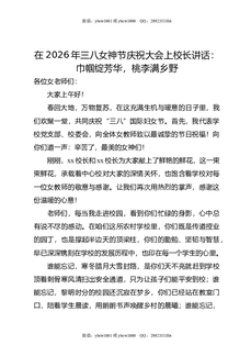 在2026年三八女神节庆祝大会上校长讲话:巾帼绽芳华,桃李满乡野.docx