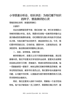 小学质量分析会,校长讲话:为他们播下知识的种子,塑造美好的心灵.docx