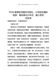 2026春季新学期开学典礼,小学校长精彩致辞:春风催马少年志,童心筑梦向未来.doc