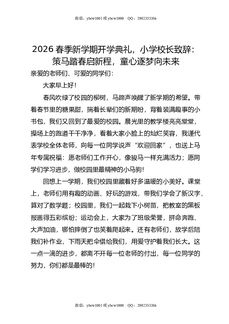 2026春季新学期开学典礼,小学校长致辞:策马踏春启新程,童心逐梦向未来.doc