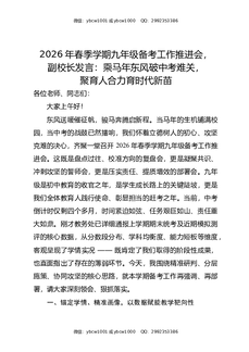 2026年春季学期九年级备考工作推进会,副校长发言:乘马年东风破中考难关,聚育人合力育时代新苗.docx