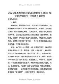 2026年春季学期开学初法制副校长讲话:学法知法守底线,平安成长向未来.docx